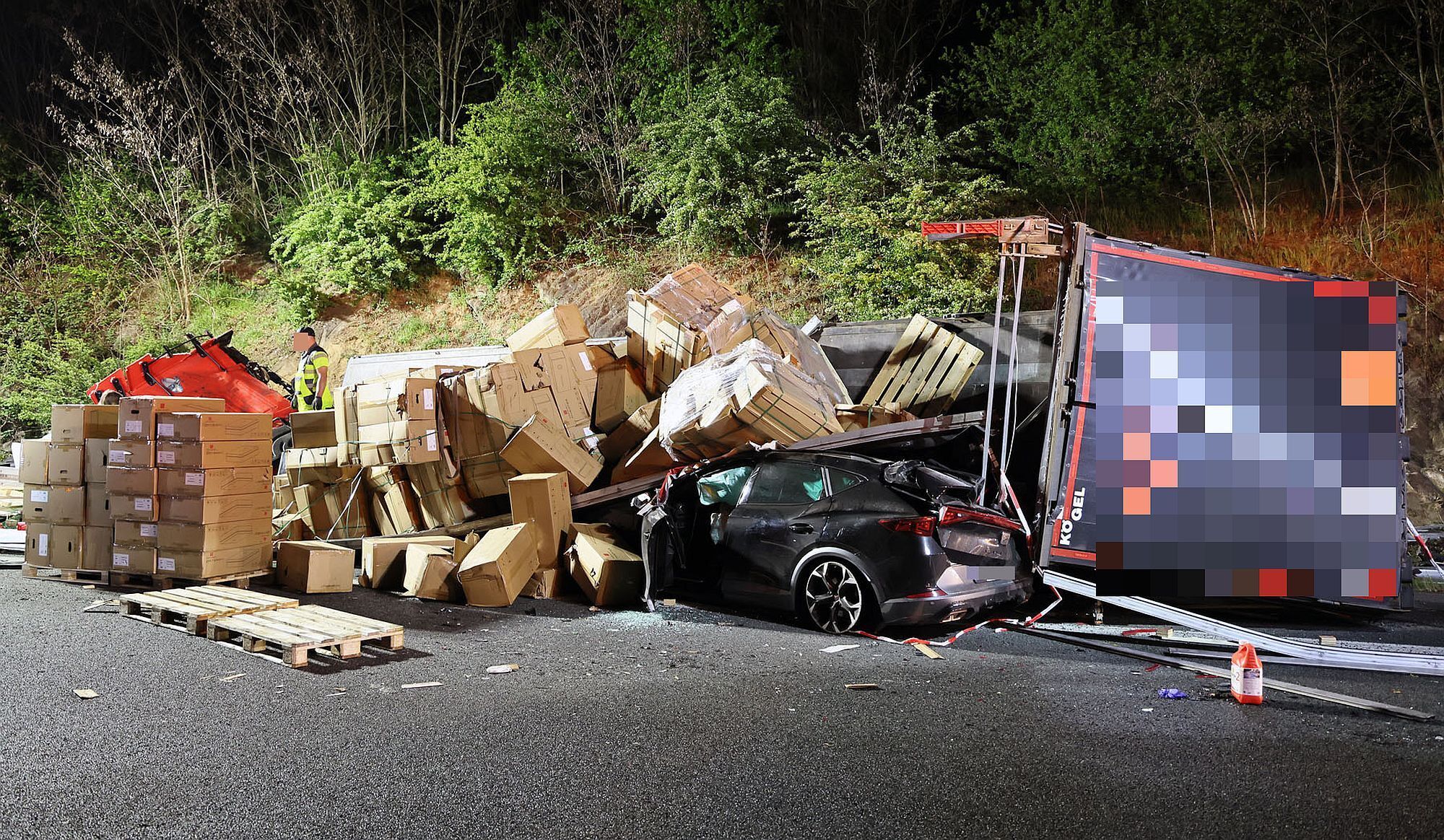 Bei einem Verkehrsunfall auf der A3 bei Aschaffenburg am Dienstag wurde ein Cupra unter einem umgekippten Sattelauflieger begraben. Während die Insassen des Cupra noch eigenständig aussteigen konnten, wurde der LKW-Fahrer in seinem Führerhaus eingeklemmt und tödlich verletzt. Gegen 18.30 Uhr war der Fahrer eines Sattelzuges auf dem rechten Fahrstreifen der A3 in Richtung Frankfurt unterwegs.