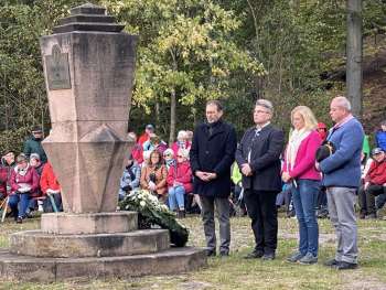 Immer am zweiten Sonntag im Oktober versammeln sich die Spessartbund-Mitglieder am Pollasch bei Heigenbrücken zum Gedenken. Am Ehrenmal des Spessartbunds kamen über 300 Mitglieder aus mehr als 30 Ortsvereinen mit ihren Wimpeln zum Pollasch, um Abschied zu nehmen von den ehemaligen Weggefährten. Maria Weidert und Herbert Arnold verlasen die Namen der 186 im letzten Jahr verstorbenen Mitglieder.